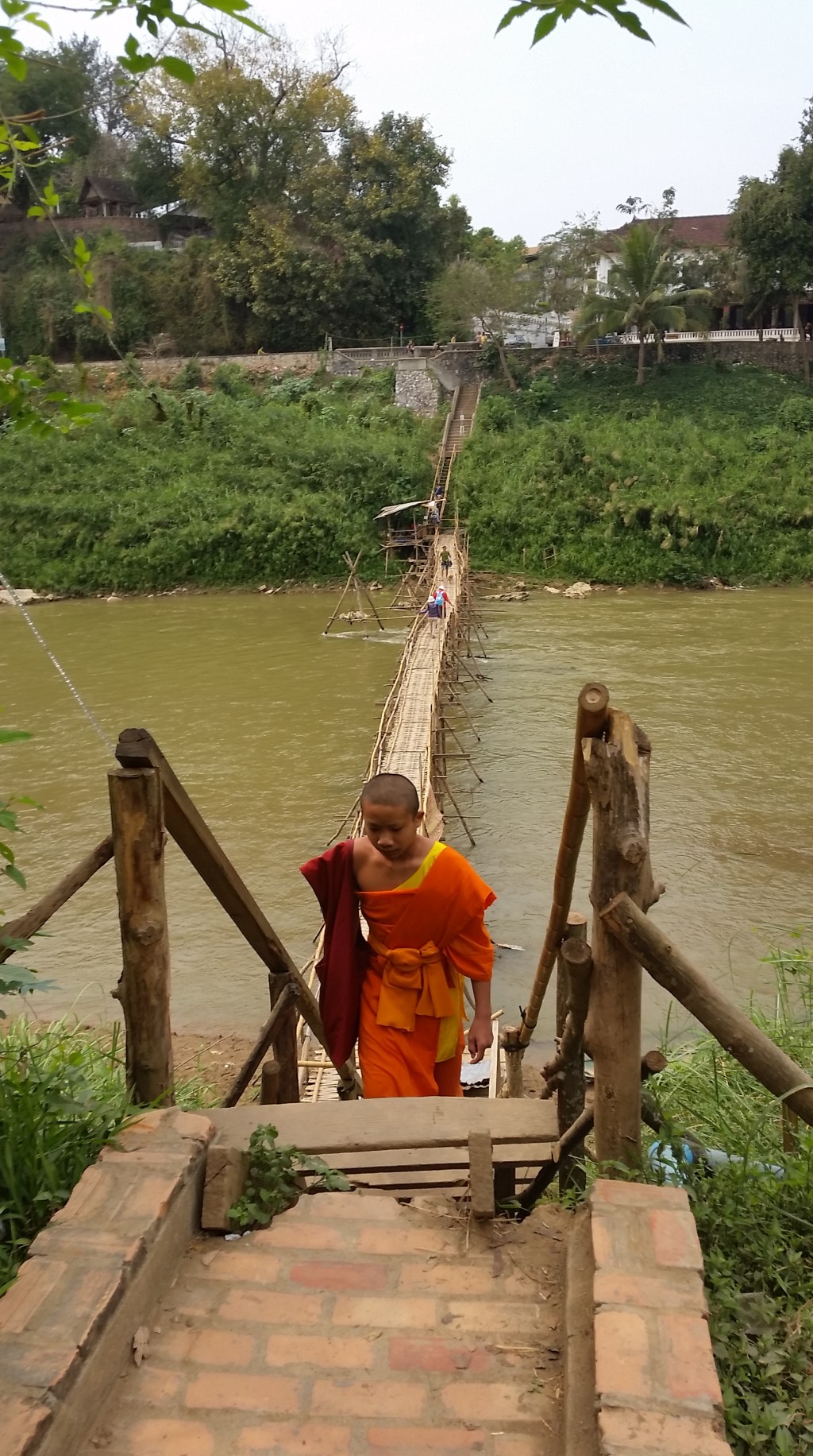 Luang Prabang turned out to be the most delightful of cities. Imagine Laos gentle civility fused with French culture, add in the history and daily life of Buddhist temples, a riverside location and World Heritage status and perhaps you can begin to understand what makes it so special. I booked for 3 nights, but stayed for five. I confess that the first evening, after a blissful swim in the hotel pool I crossed the bamboo bridge to town, opting not only for steak and chips and an ice cream, but a chocolate pancake as well, then back in my room I finished a half-eaten packet of Oreos. After that, just like the Very Hungry Caterpillar, I felt much better!