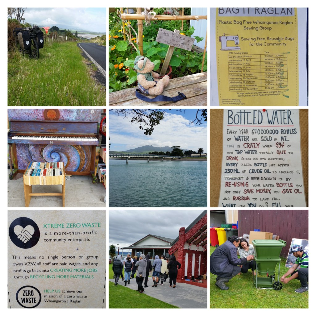 South of Auckland on my daughter’s old touring bike, I’m heading for the annual Para Kore Hui being held this year at Maketu Marae, Kawhia. Para Kore (Te Reo for ‘Waste Zero’)Its an awesome not-for-profit organisation filled with creative, far-sighted individuals, whose vision is for every marae in Aotearoa to be on the ‘Para Kore’ journey by 2020, so I feel honoured to once again be gathering with fellow Kiwis from every walk of life to share understanding and experiences in this kaupapa.