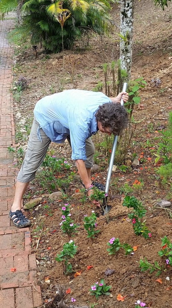 I’ve taken the opportunity to remain for a week of volunteering while yesterday the rest of my family group departed, off on new life adventures across the world. A day working in the garden yesterday had me in bed early, content to tuck myself under my mosquito net. The rainy season is due but so far the earth remains hard and dry and hacking into hard clay soil with a very small blade welded to a piece of galvanised pipe (not very well welded either, I found out to my embarrassment) was a challenge. I found myself more wearied even in this heat than cycling through recent mountain passes.