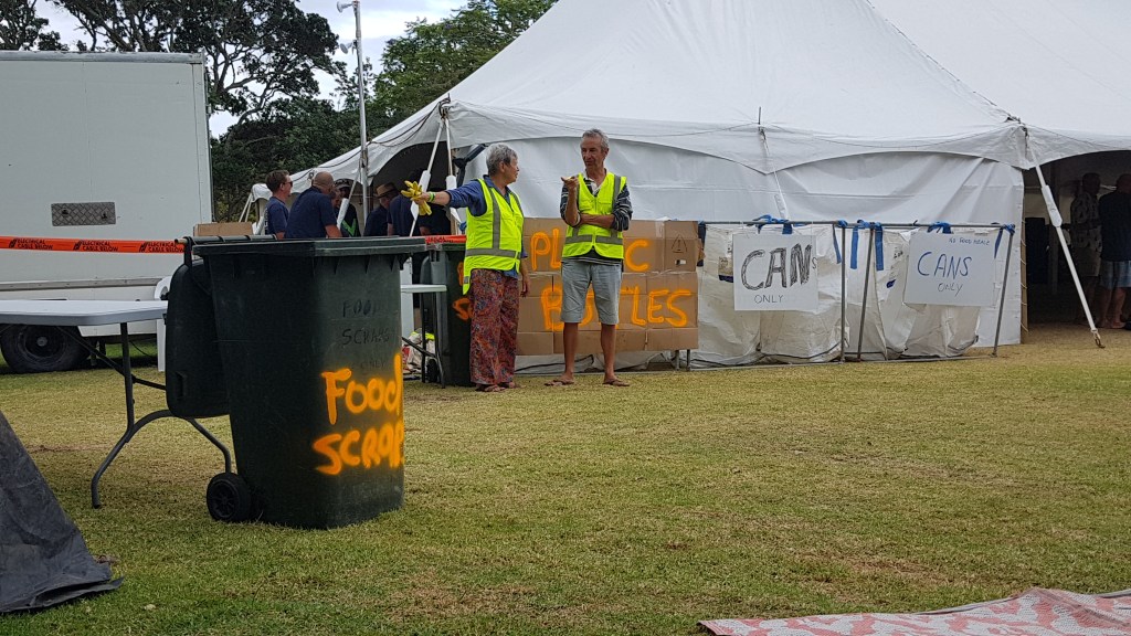9th Jan. Donning my hi vis Zero-Waste-Granny vest, I’m off by bike via the Opua car ferry to Russell. It’s a chance to get bike fit and support the annual Tall Ships Race celebration. Recycling bins are set up and our job is to direct revellers in putting hangi food scraps, compostable plates, bottles and cans, and,regrettably, landill bound foil and plastic forks. 900 portions of the best hangi (yes, vegetarians catered for too) I’ve ever tasted, delivered within a friendly community atmosphere. Sated by food, useful discussions, and a job well done, I delight in the ferry ride to Paihia and cycle home in the dark over the hill back home.