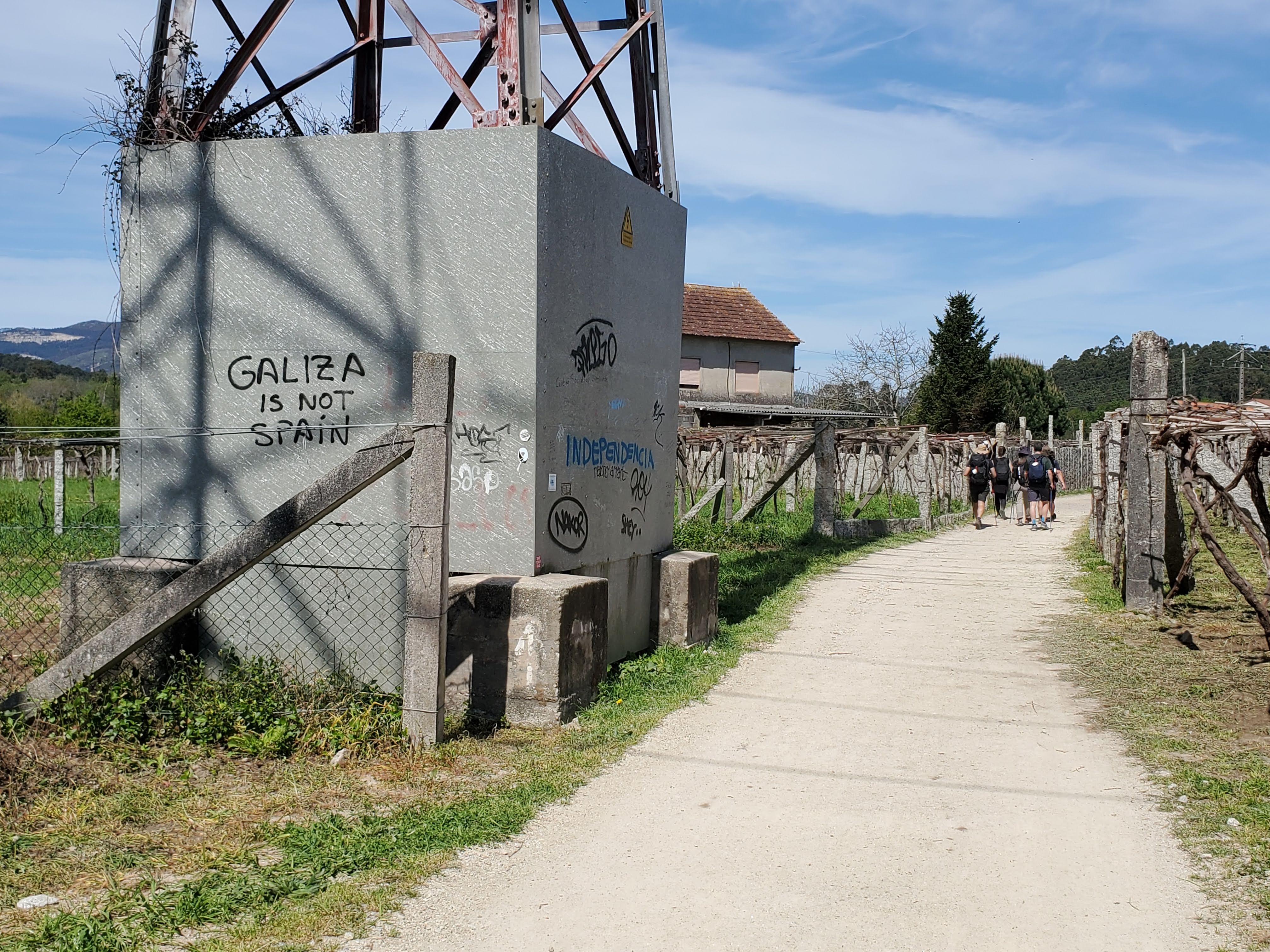 A Russian/Ukrainian couple seeking a place to settle, a German man far older than me who was struggling up a hill hoping to find somewhere to stay for the night , whom I walked alongside for a while – he explained how 5 years ago, he’d completed a 2700km pilgrimage from his home in Germany, to the ‘Hello New Zealand’ greeting from a fast walking German man ( yes, I met a lot of Germans) returning south from Santiago – we had met earlier south of Porto and although walking, he had completed the pilgrimage long before me and was well on his way back… “Some days”, he said, “I walk 50kms.”