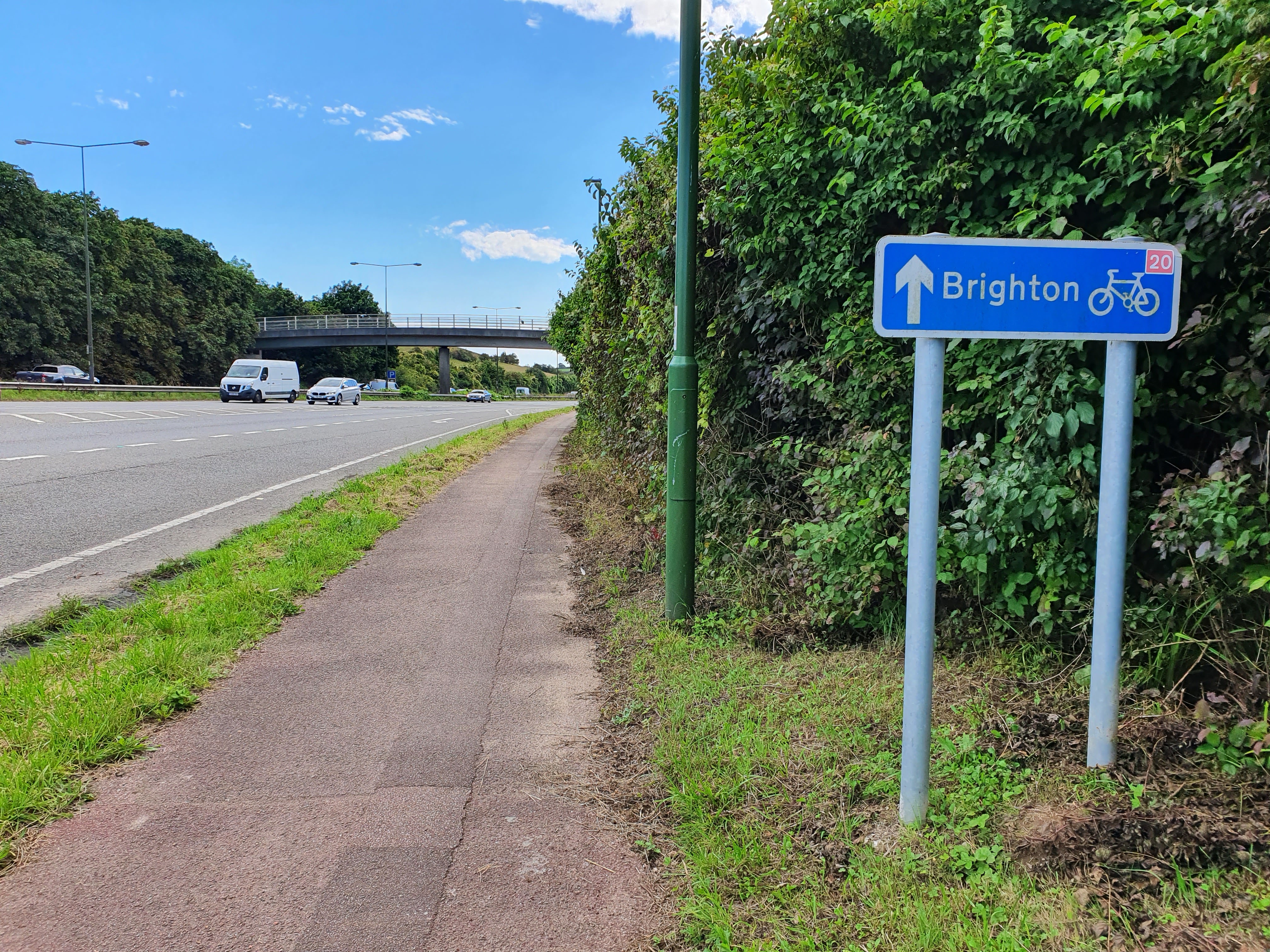 The sleeper train from Inverness had arrived in London ahead of time ‘to avoid issues from the Rail Workers strike’ we were told, so by 8am I was cycling across Waterloo Bridge. “How incredible,” I thought as I paused to celebrate the view down the Thames to Big Ben, “To be here in the centre of the city on my bike!” This traffic-free bike-friendly central London at rush-hour was an unexpected joy. Heading south, it seemed special to call in at the home of a good friend. Then, fuelled up on Earl Grey tea and a catch-up covering the past 40+ years, I set off towards Brighton.