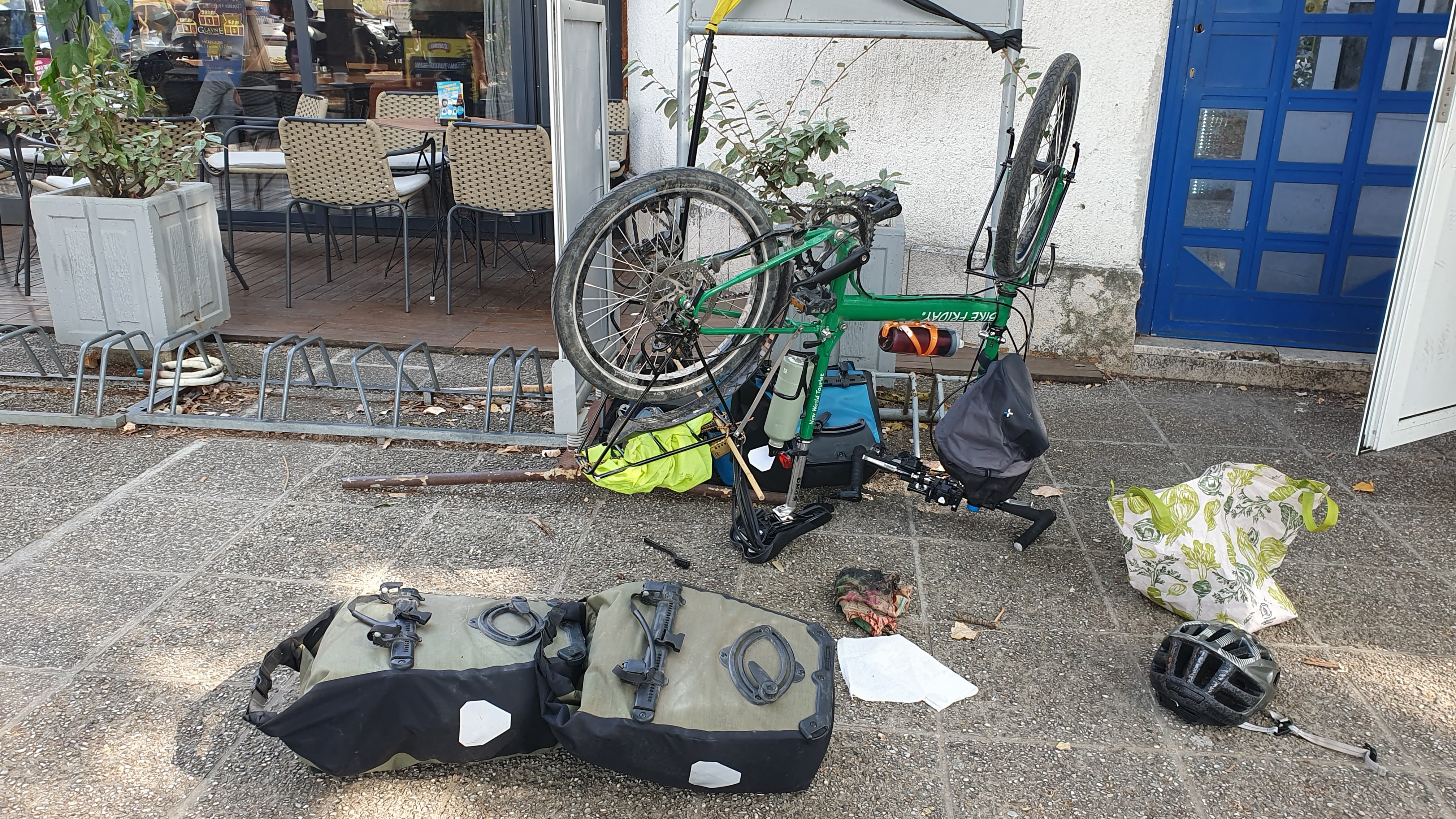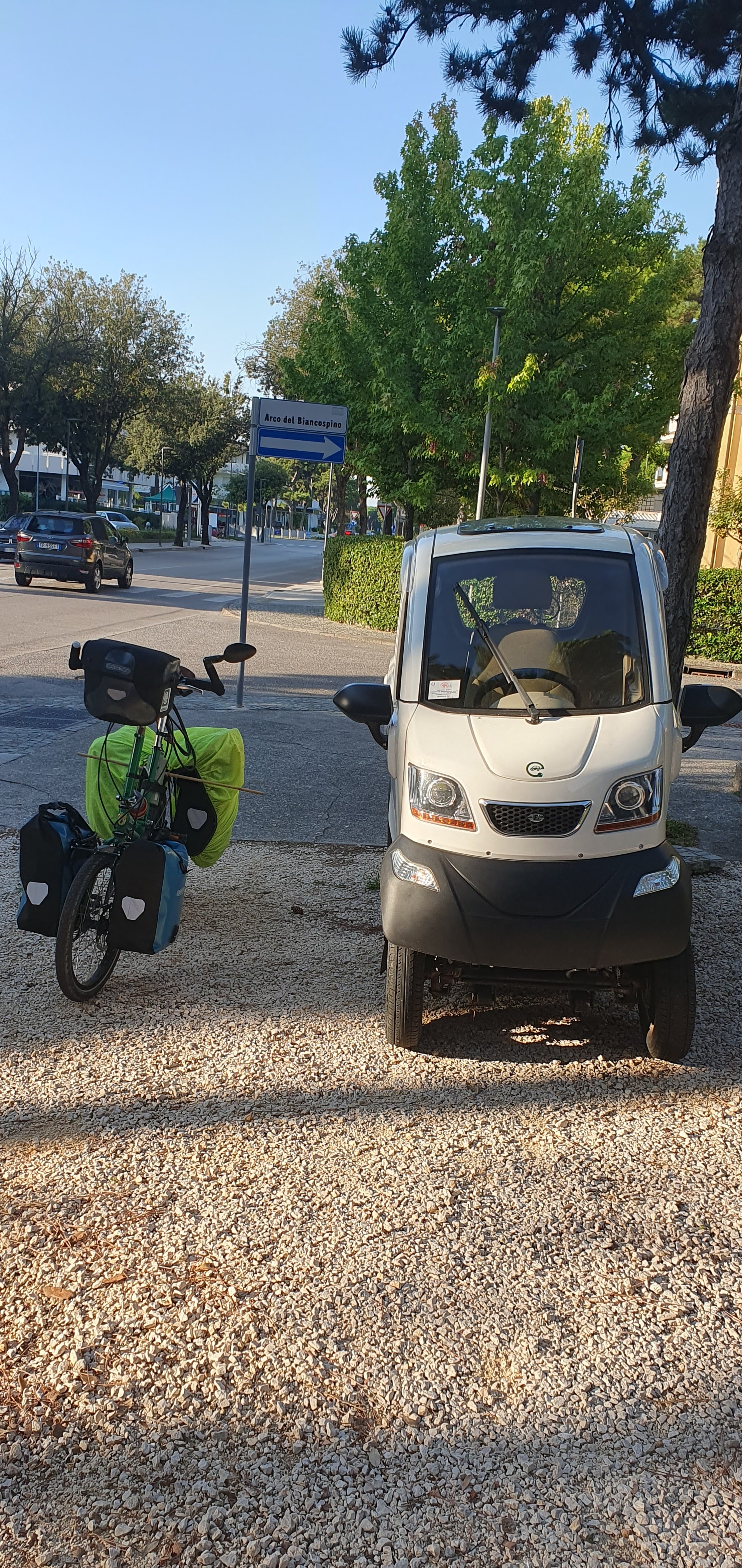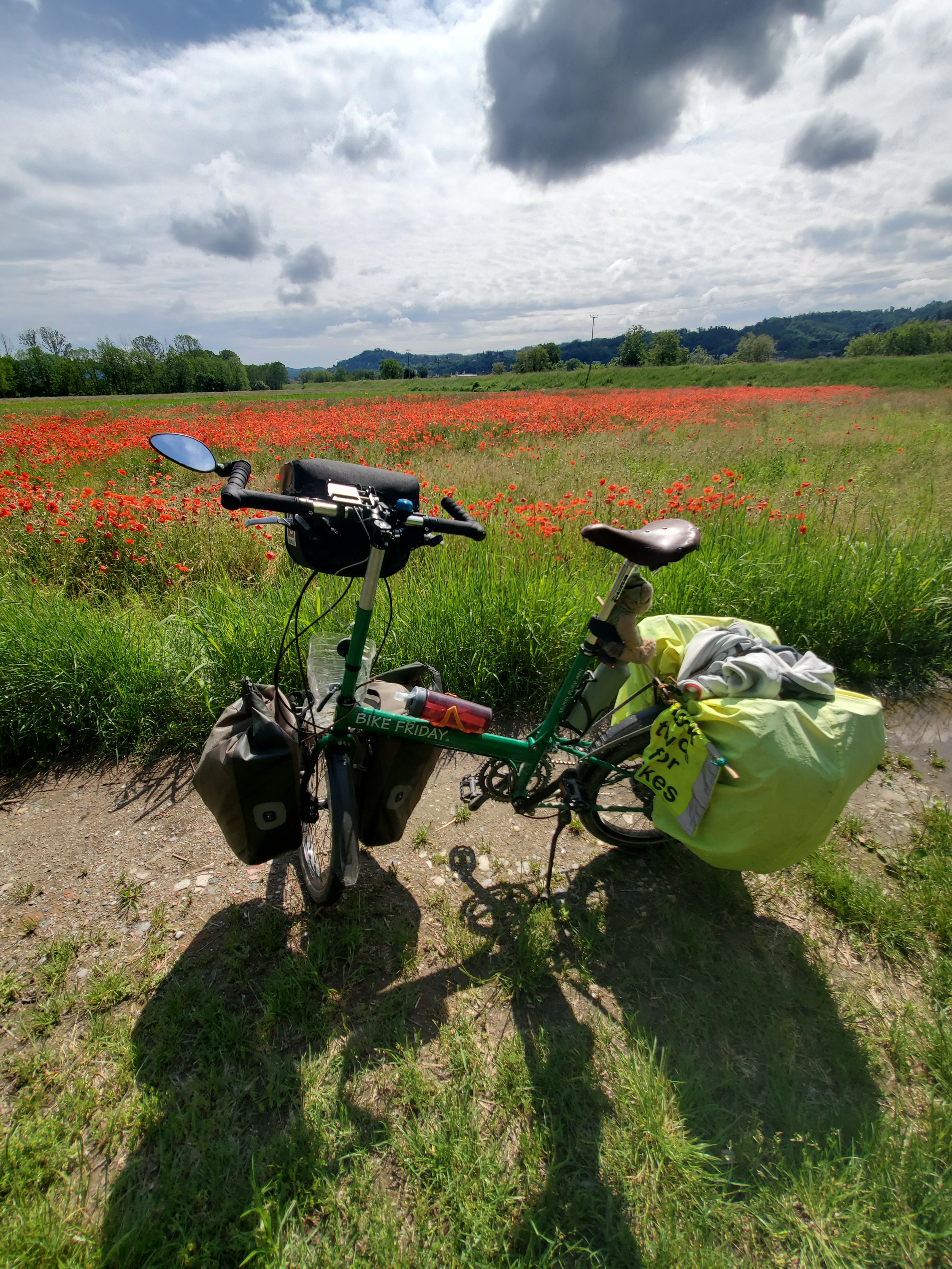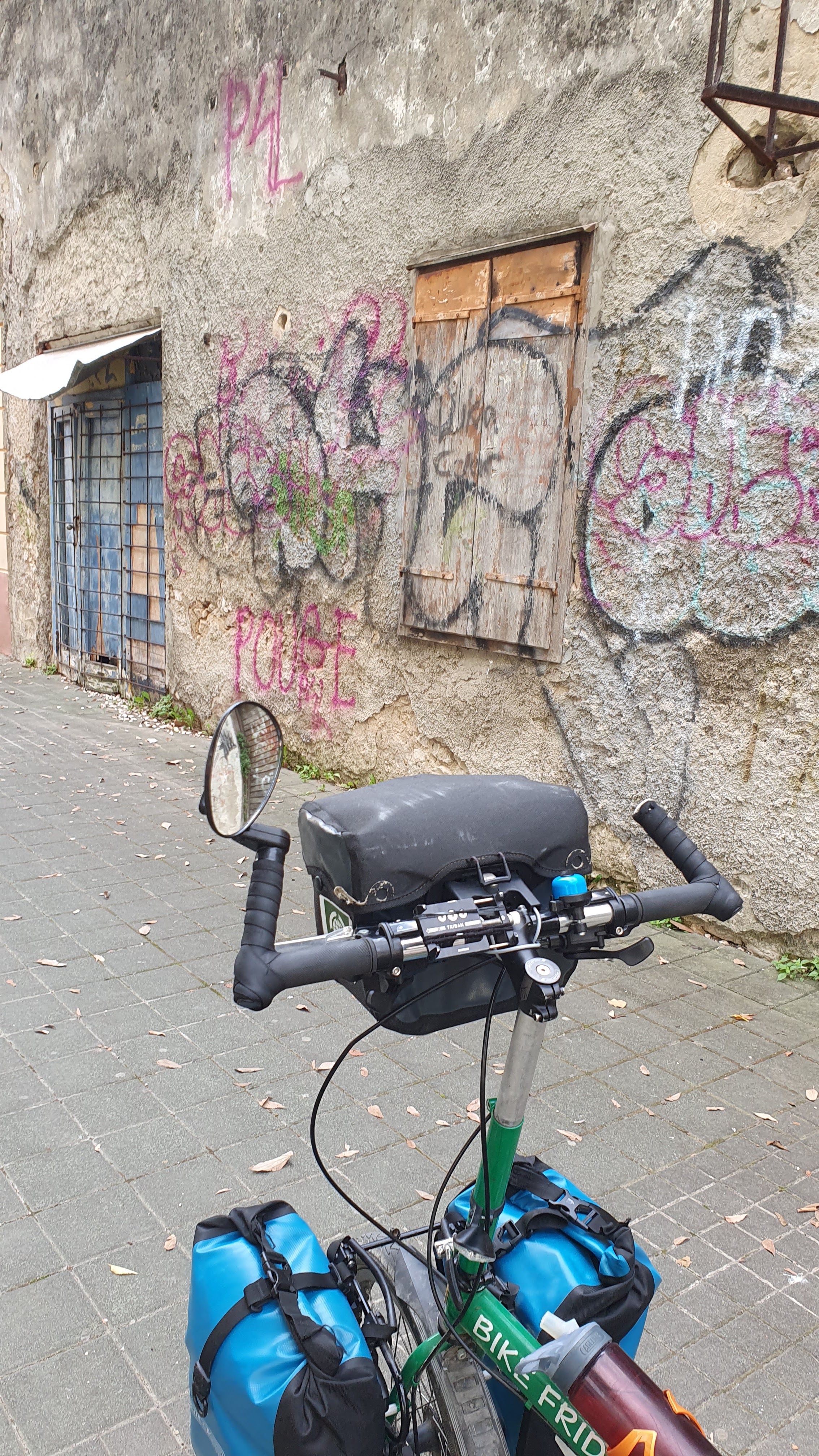 I enjoy this quote: it’s been my phone screensaver. However, while I’d agree with the ‘freedom’ and ‘self-reliance’, some days I do feel ‘trammelled’! Take last month, for example. I called into a bike shop in Trieste in northern Italy to request someone check and tighten my bike’s disc brakes. (In theory I know how to do this, yet with steep coastal roads ahead rather greater expertise than I yet posess seemed wise). The bike mechanic, a man of about my age, spoke little English but quickly understood my request.