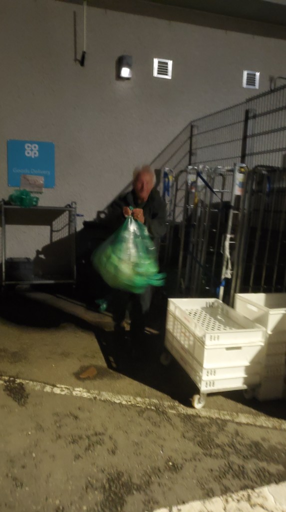 Cycling past the historic battlefield of Culloden Moor, I stay for a week helping a retired gentleman, an advocate for ‘dumpster-diving.’ Surprisingly, it is the strong position this HelpX host has ‘against waste’ that I find the most challenging. One night, I cower in his van at 10pm having accepted the invitation to accompany him, and watch him drag two large green bin bags out of the bins behind a local supermarket. We leave hastily before we are discovered, stashing the bags in the back of his van, so it is not until we reach home that we check out this hoard of past-its-use-by-date foods. I find my host’s glee a bit confusing: there is a 5kg bag of potatoes (one potato is rotten which has deemed the bag lot unsaleable) yet my host is a superb organic gardener and has just that day been harvesting home-grown potatoes. There are out-of-date croissants and loaves of bread of dubious attractiveness yet my host had that morning baked a delicious home-made loaf. I remove plastic wrap from broccoli stems so yellow they are to be placed straight into the compost bin, and with a kitchen full of home grown fruit, decline the offer to help myself to an out-of-date ‘Mr Kipling Apple Tart’, packets of which are piled high from previous sorties.