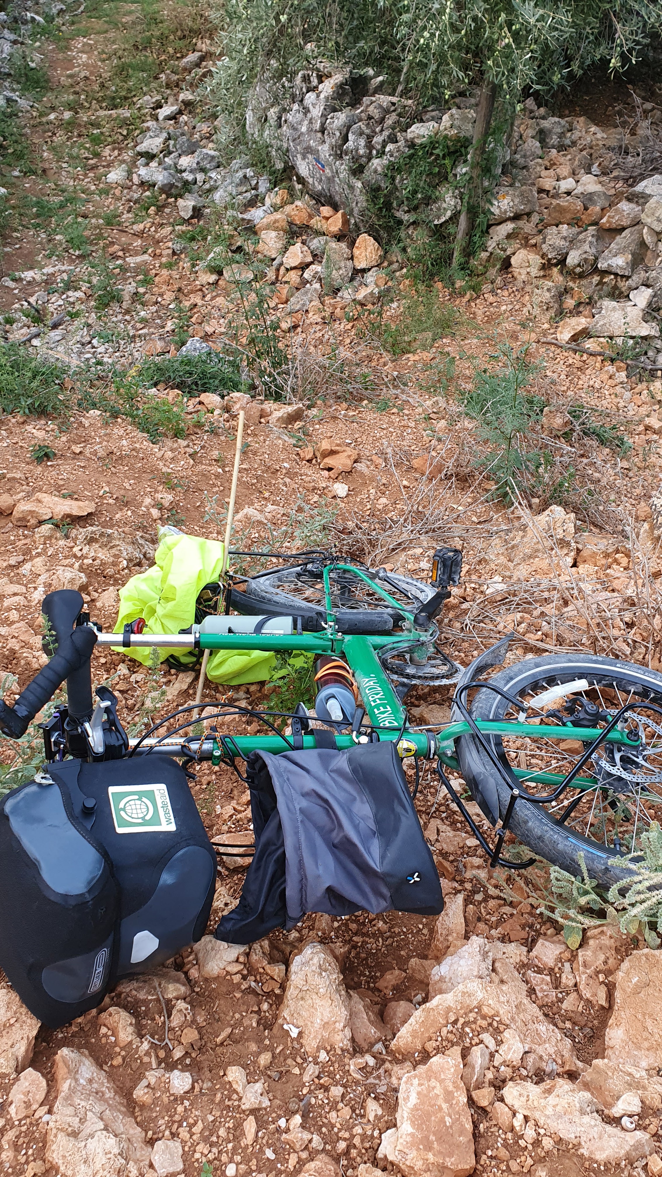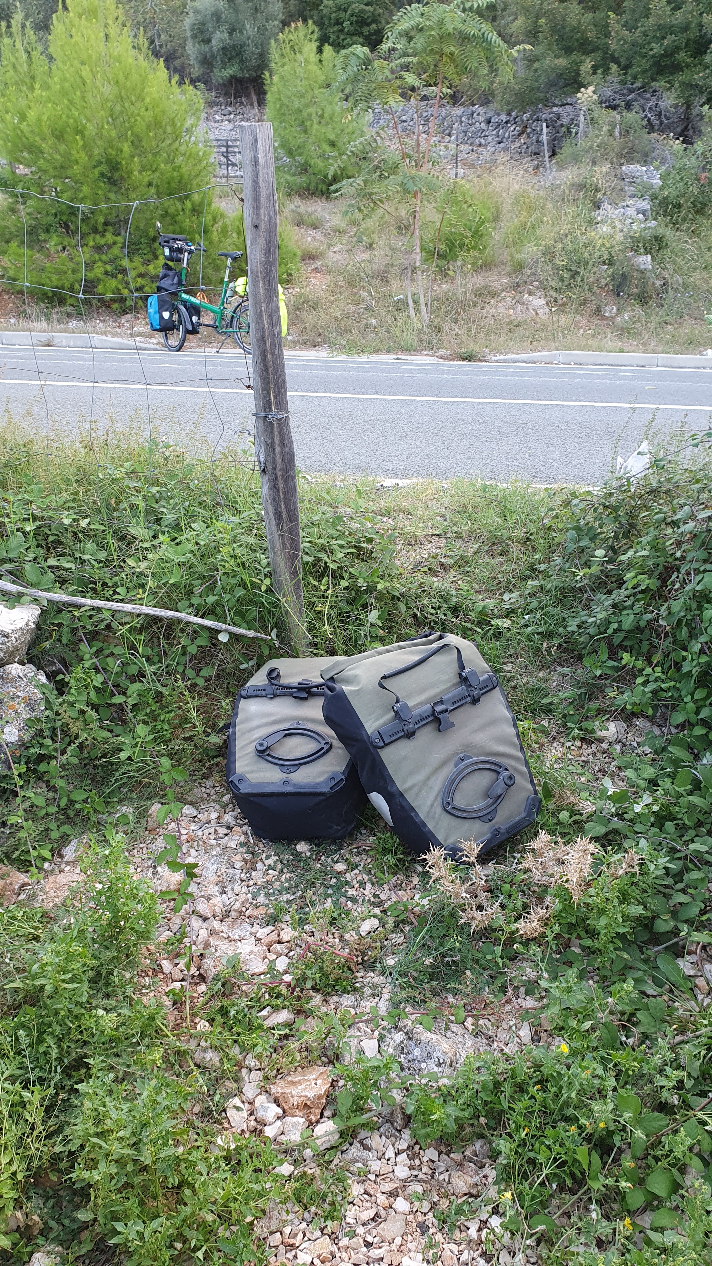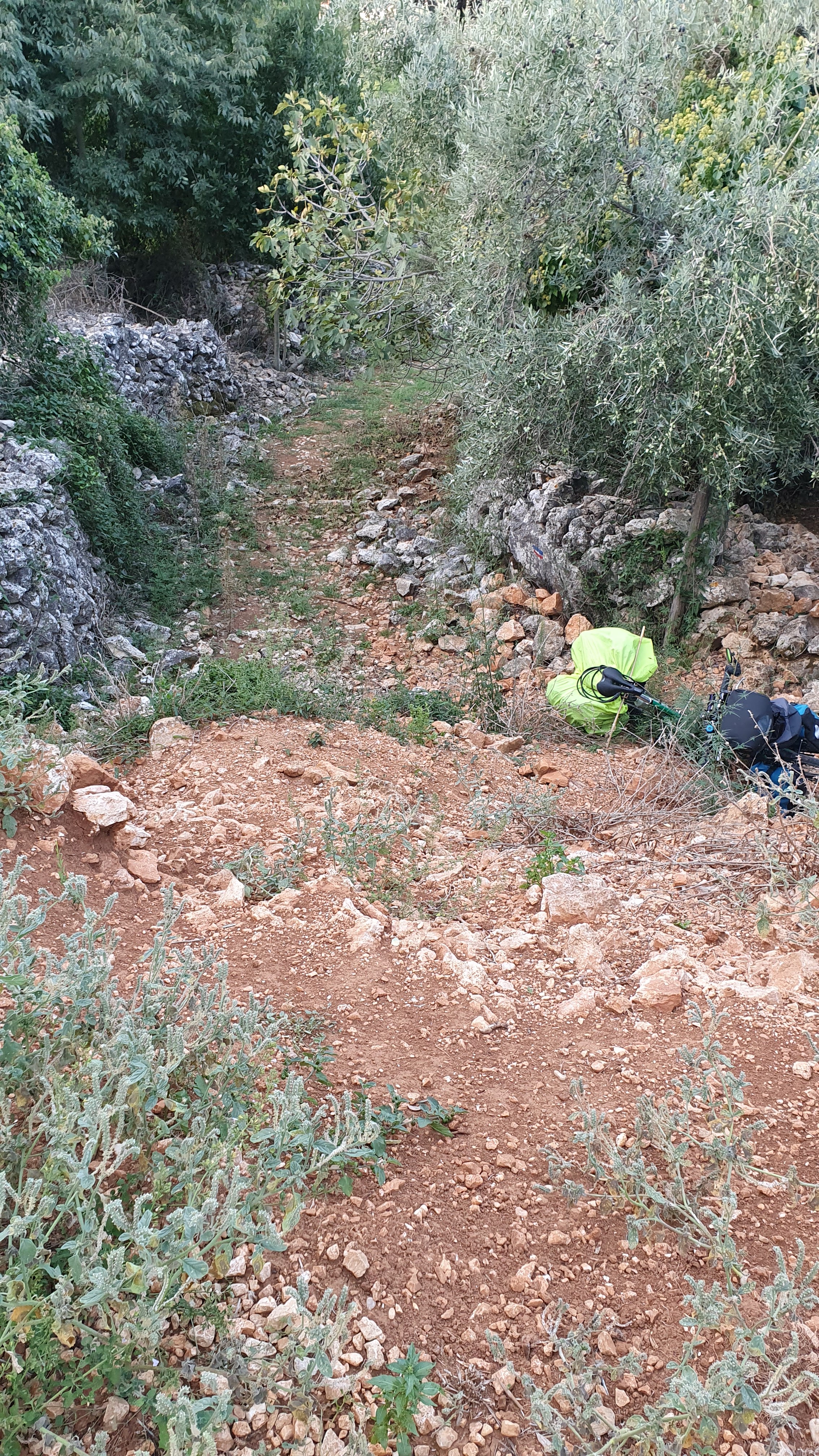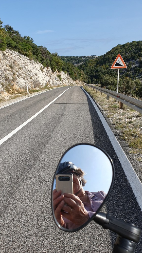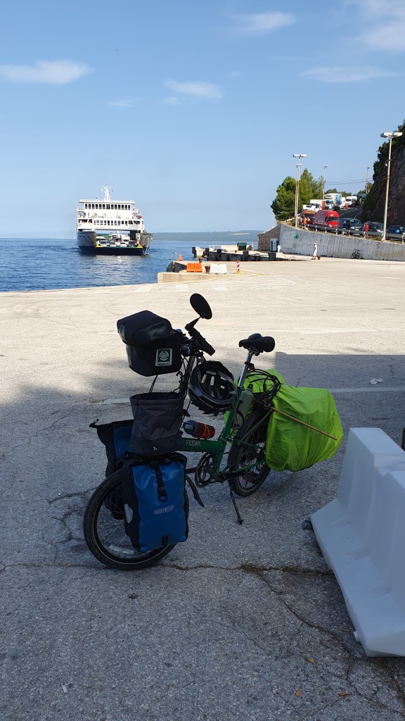 It was one of those days when ‘Komoot’, the marvellous cycle routing App failed me, or rather, I failed to cross check on Google Maps. Leaving the town on the island of Cres to head for the ferry, I’d noted a small section of the route was marked in dashes rather than a full line, and the note,’you’ll need to dismount and push your bike. ‘ “No worries”, I’d thought, “It seems a worthwhile shortcut off the main road.”