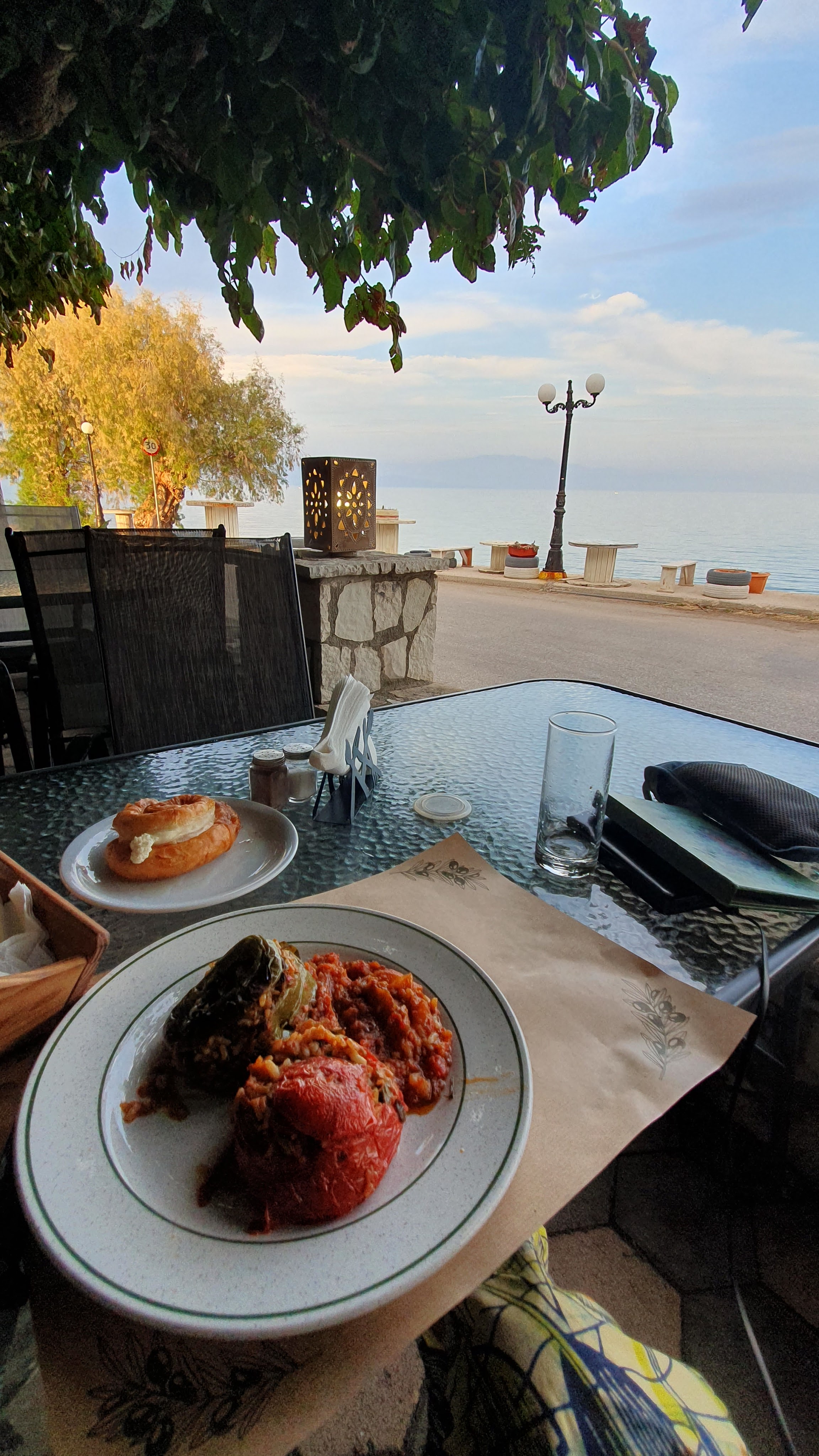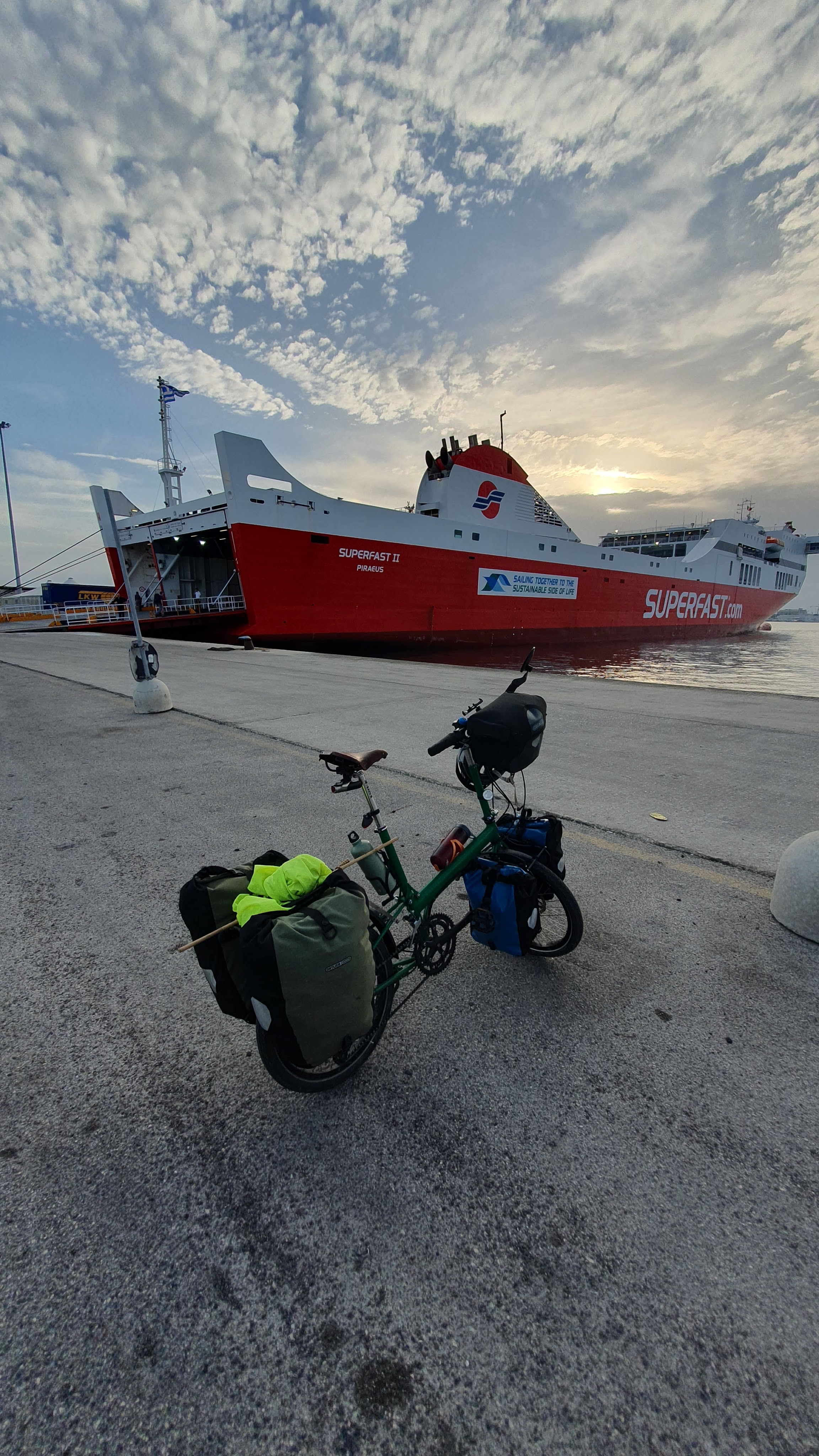 With 80 km to cover today including two ferry journeys to co-ordinate, I farewelled the friendly guest house owner, Katerina, before 8am. With the gift of fresh eggs from her chickens, now hard-boiled for lunch and stashed in my front pannier, I had left the town of Ancient Corinth in the morning cool. Today though, every experience seems heightened: . There is a poignancy in how this is my last chance for these sights, these scents, these experiences.