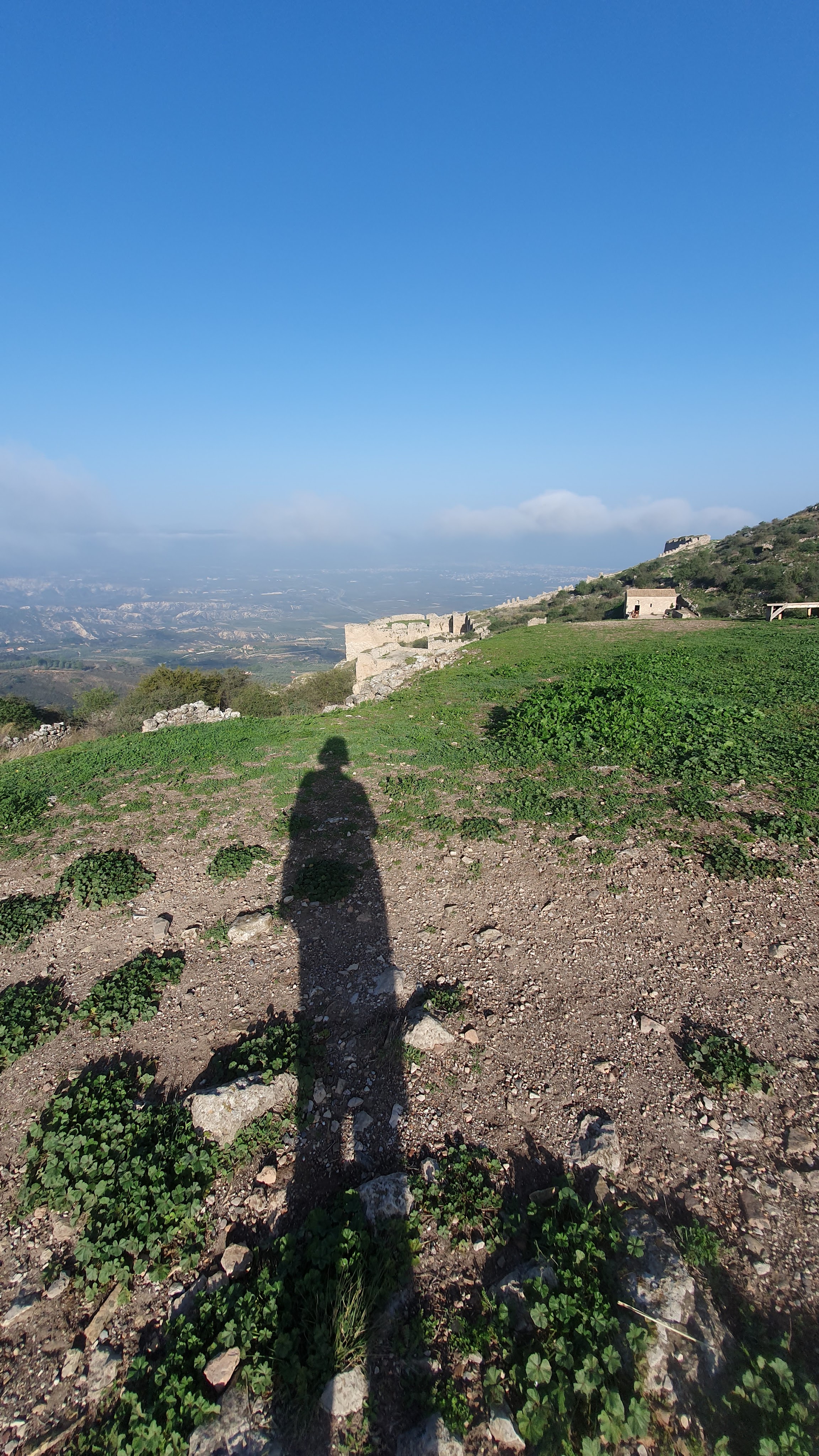 Towering above me is the historic fortress of Akrocorinth. It’s a regional microcosm of three thousand years of conquests and defeats, the rise and fall of religions, overturned by the each new set of the rulers of the day. Yesterday I’d climbed amongst the ruins of Mycenean, Roman, and Byzantine empires, scrambled around Crusaders’ temples, the mosques of Ottoman Turks, and remnants of barracks built in the heyday of Venetian rule. Today, I’d awoken heavy of heart, so conscious of current suffering in the Gaza region; seeing this hilltop site highlighted by the early morning sun reminds me this cycle of conquests is not yet over.